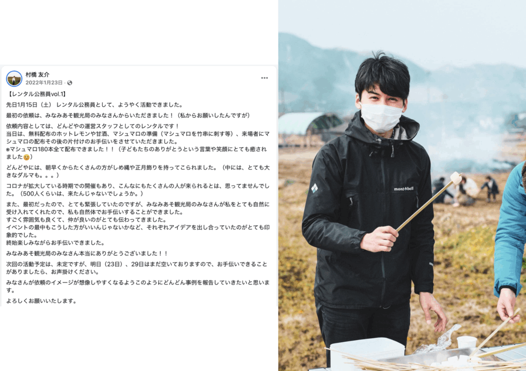 前編では、村橋さんが「地域のために役立ちたい」という情熱と、コロナ禍でのもどかしさからレンタル公務員という活動にたどり着くまでを伺いました。